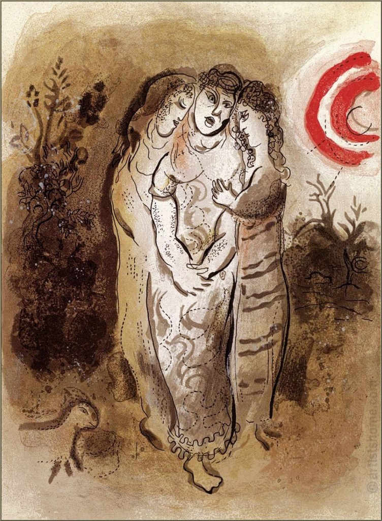 Die Namen Rut und Noemi werden zu Synonymen für eine untrennbare himmlische Verbindung (Chaim Nachman Bialik war bekannt für seine Aussage, dass Jiddisch und Hebräisch wie Rut und Noemi seien). Die beiden sehr unterschiedlichen Frauen, die die Geschichte beginnen, sind auch diejenigen, die sie beenden. Wie eine untrennbare Einheit erscheint die Geburt Obeds, als ob sie von beiden gemeinsam ausgegangen wäre. In der Schlussszene nimmt Noemi Ruts Neugeborenes auf ihren Schoss, als die Nachbarinnen rufen: «Ein kleiner Junge für Noemi, sein Name ist Obed, und er wird der Vater von Isai sein, dem Vater Davids.»