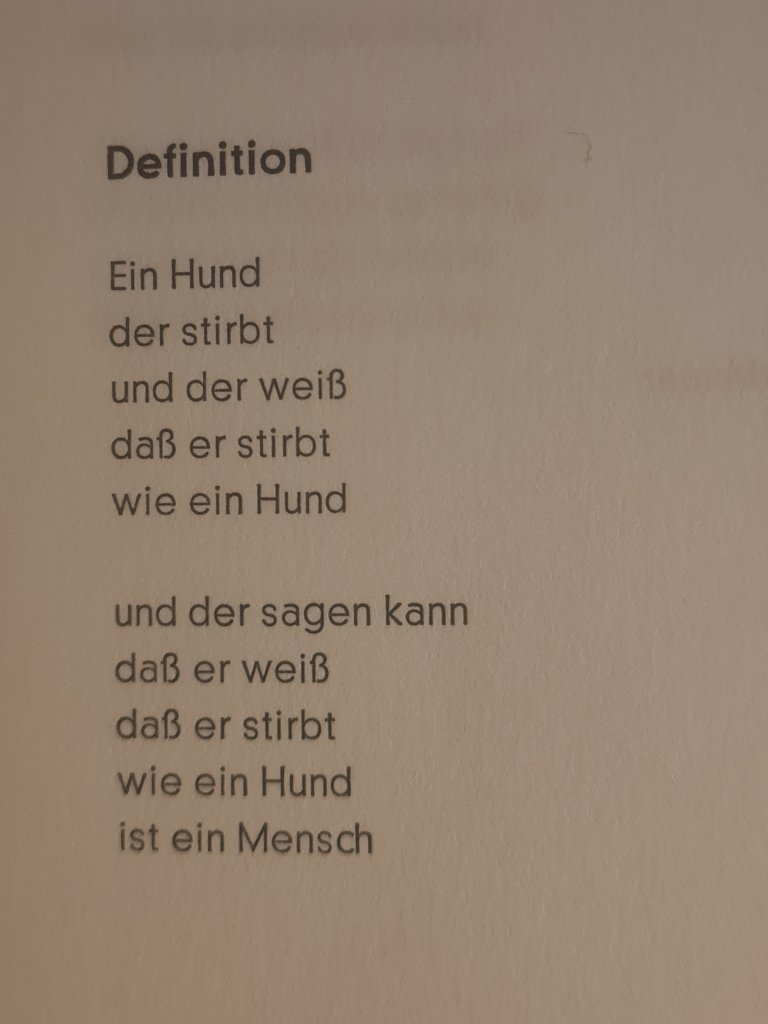 Erich Fried, der rund 40 Jahre später seine Warngedichte veröffentlichte, muss Kafka im Kopf gehabt haben, als er sein Gedicht Definition schrieb: